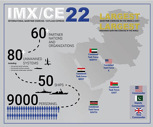 IMX/CE 2022 is not only the largest multinational naval exercise in the Middle East but also the largest unmanned exercise in the world with more than 80 unmanned systems from ten nations. The exercise will allow participating forces to test unmanned systems and artificial intelligence in different training scenarios and ultimately apply the lessons learned to future real-world operations.
