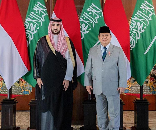The Saudi minister of defense paid an official visit to Indonesia. Upon arrival at the Ministry of Defense headquarters, an official ceremony was held, during which the national anthems of the two countries were played and the guard of honor was inspected.