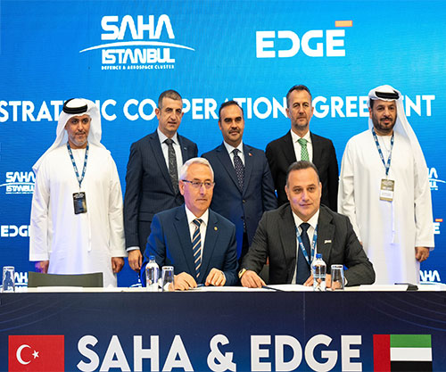 The signing of the strategic cooperation agreement provides a framework for both sides to identify collaborative opportunities for joint development, and will enable EDGE to leverage Türkiye’s advanced ecosystem and robust supply chains. The agreement was signed by Mansour AlMulla, EDGE Group Managing Director & CEO, and İlhami Keleş Vice Chairman of SAHA Istanbul, and witnessed by His Excellency Faisal Al Bannai, Chairman of EDGE Group, and Haluk Bayraktar, Chairman of SAHA Istanbul.