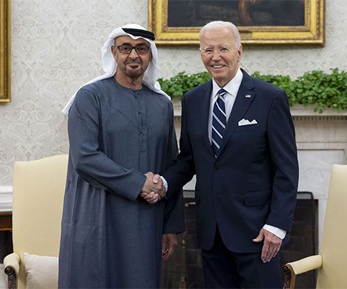 The UAE and US Presidents also discussed regional and international issues of mutual interest, especially developments in the Middle East and the humanitarian crisis in Gaza. They addressed efforts aimed at achieving a ceasefire to ensure the unobstructed flow of sufficient humanitarian aid and to contain any escalation that threatens regional security and stability.