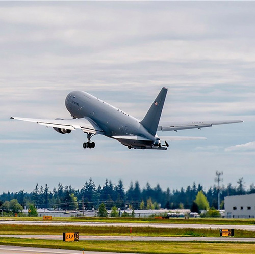 First flight of the fully-provisioned KC-46 tanker took place in September 2015. Six test aircraft have now completed more than 2,200 flight hours and conducted refueling flights with F-16, F/A-18, AV-8B, C-17, A-10, KC-10 and KC-46 aircraft.