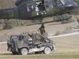 As all other vehicles of the MUNGO family of air-portable vehicles, with its small size and low overall weight the MUNGO 2 Multi-purpose was specifically developed for transportation on a CH-53 transport helicopter. With its universal hydraulics and transport system this multi-purpose version is particularly suitable for the mission-specific transport of munitions, fuel, maintenance, and NBC - decontamination equipment. A quick-change system for front mounting implements additionally enables the deployment of engineering systems. With a payload of up to 1.5 tons the MUNGO 2 Multi-purpose can additionally transport supply or armament in trailer operations.