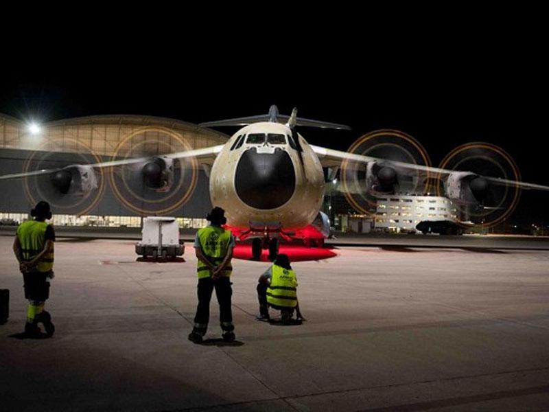 The four engines on the aircraft were successfully run simultaneously for the first time on 29th July at the Airbus Military facility in Seville, Spain. The aircraft will be transferred to the Airbus Military delivery centre in September.