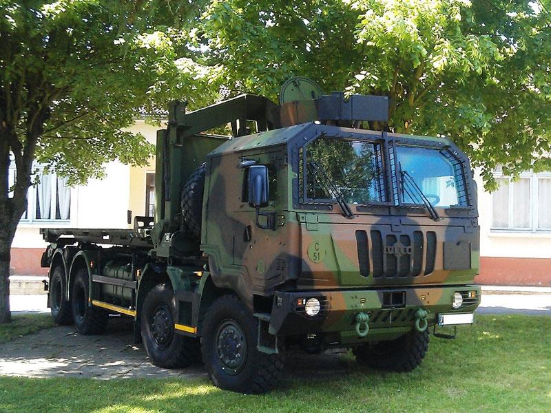 Both vehicles share the same chassis with 4 axle 8 wheel drive (8x8), ensuring on and off road mobility in all climatic conditions (for example on snow covered mountain roads). The logistic vehicle will feature an independent hook-lift body for load-handling operations, with a payload up to 19 tonnes, whilst the recovery vehicle will be supplied with a crane for recovering military vehicles.