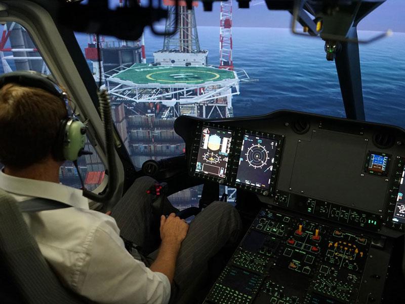 Utilizing a motion system, computer-generated visual scenes and accurate representations of cockpit instrumentation, the simulator allows specific mission scenarios to be “flown,” including landings on off-shore platforms for oil and gas operations – enabling the most realistic flight conditions for immersive training.
