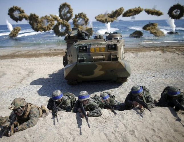 The weeklong exercise involves some 2,600 Marines from South Korea and 130 counterparts from the United States. The troops will be supported by some 10 warships, including Aegis destroyers, and 30 amphibious assault vehicles and aircraft, the South Korean Navy said in a statement, cited by state news agency (Yonhap).