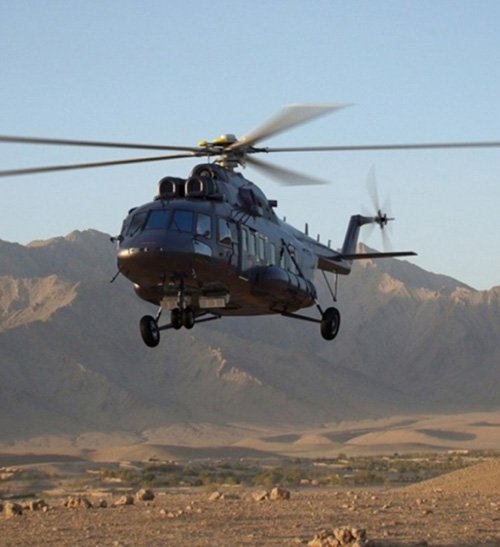 Mi-171E helicopter is equipped with a new rotor and X-shaped tail rotor with blades made of polymer composite materials, upgraded swash plate, Russian-made VK-2500PS-03 engine with a FADEC-type digital control system, and with modified stabilizer and keel beam.