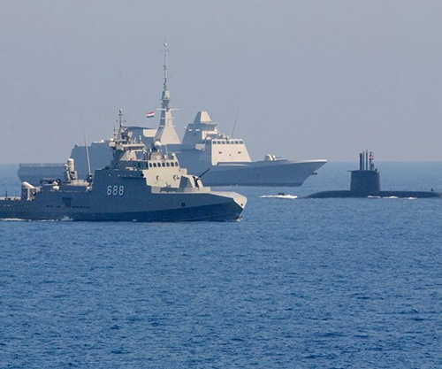 The drill activities included holding a pre-sailing conference at the Berenice Naval Base, in the presence of specialists from both sides, followed by the implementation of a set of combat activities of a professional nature, especially in the field of enhancing maritime security measures, with the aim of securing sea transportation lines and global trade and combating any threats.