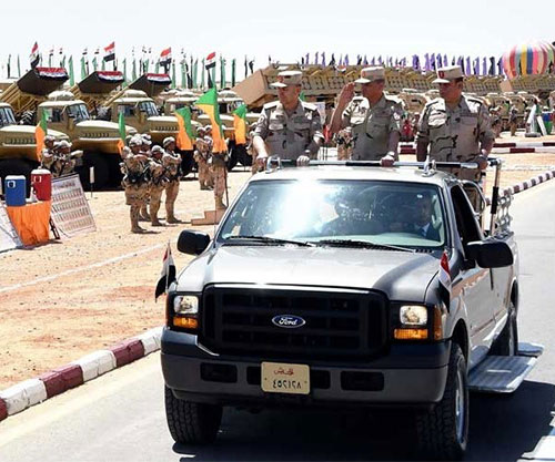 Coinciding with Egypt and the Armed Forces celebrations of the forty-second anniversary of the Sinai Liberation, General Mohamed Zaki, Commander-in-Chief of the Armed Forces, Minister of Defense and Military Production, witnessed pre-combat inspection procedures and combat readiness and technical efficiency for artillery units of the General Command, which have been integrated into the tactical formations and administration of artillery after their development according to the latest combat systems.