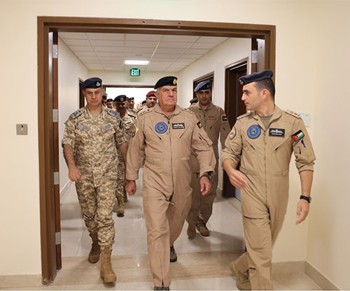 Major General Yousef Ahmed Al-Hunaiti, the Chairman of the Joint Chiefs of Staff, looked over the Martyr Muwaffaq Salti Air Base’s personnel and weaponry readiness last week, to assess the Base’s air power and ability to achieve strategic deterrence. The Commander of the Royal Air Force welcomed him (photo).