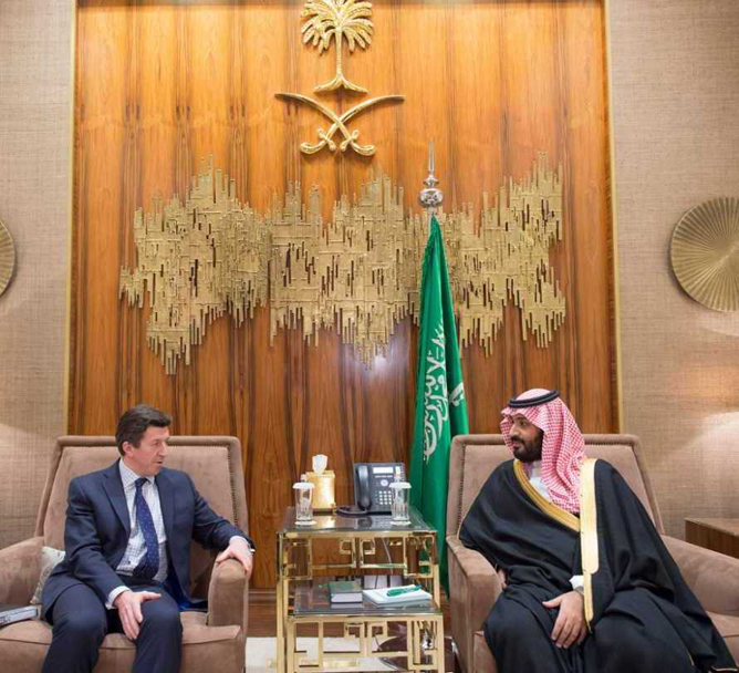 Saudi Arabia’s Deputy Crown Prince Mohammed bin Salman bin Abdulaziz, Second Deputy Premier and Minister of Defense met in Riyadh on Monday with the United Kingdom National Security Deputy Advisor John Jenkins, currently on a visit to the Kingdom, the Saudi Press Agency (SPA) reported.