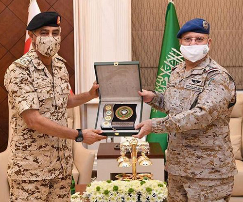 Saudi Arabia’s Chief of General Staff Lieutenant General Fayyadh bin Hamid Al-Ruwaili met Sunday, at King Salman Airbase, affiliating to the Central Sector of the armed forces, with Bahrain Defense Force (BDF)’s Chief of Staff Lieutenant General Theyab bin Saqr Al-Nuaimi, and the accompanying delegation.