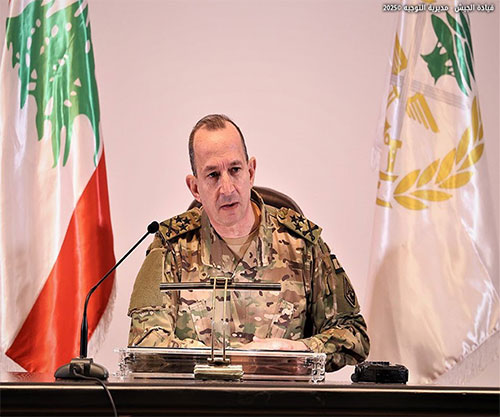 “Our priority is to ensure civil peace across all Lebanese regions, maintain the Army’s professional performance, and monitor and secure the borders. We will maintain maximum readiness and will not tolerate any threats to the institution,” he added.