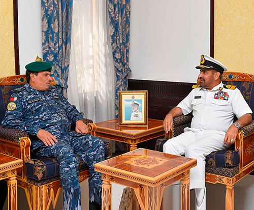 Rear Admiral Abdullah bin Khamis al-Ra’eesi, Commander of the Royal Navy of Oman (RNO) received in Muscat (photo) Commodore Eid Abdullah al-Ka’abi, Commander of the GCC Unified Maritime Operations Center and his accompanying delegation, currently visiting the Sultanate.