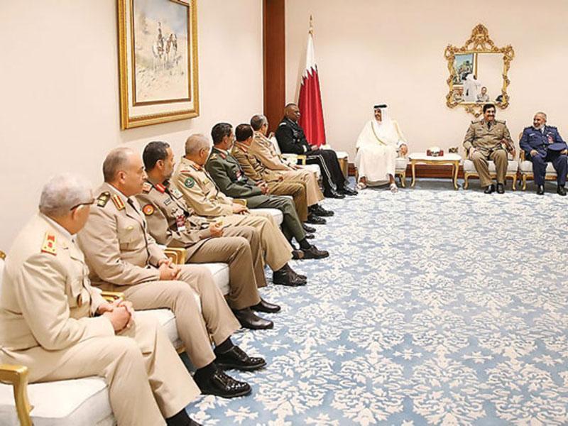 Furthermore, Sheikh Tamim met Monday morning at the Sheraton Hotel with the Chiefs of Staff of friendly countries participating in the sixth Conference of Chiefs of Staff of Coalition States for counter-terrorism, hosted by the Qatari Armed Forces.