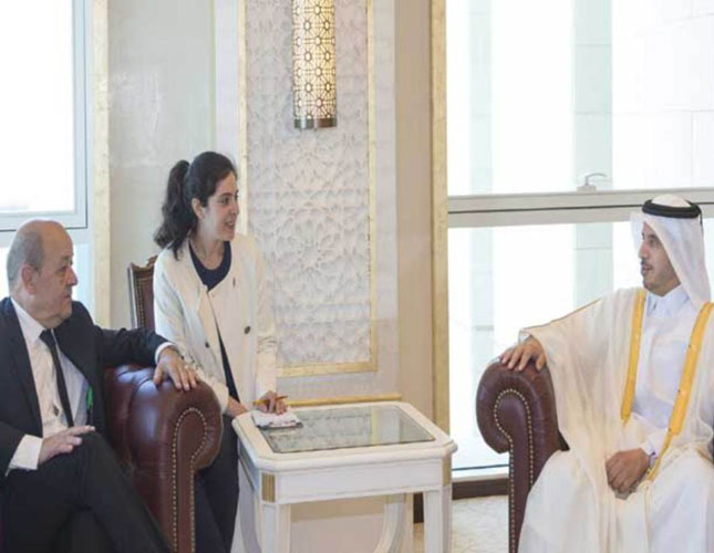 The Prime Minister and Interior Minister of Qatar Sheikh Abdullah bin Nasser bin Khalifa Al-Thani met Wednesday with Minister of Defense of the French Republic Jean-Yves Le Drian (photo) and the accompanying delegation on the occasion of their visit to the country.