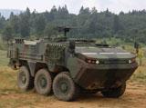 The 6.4 m long, 2.7 m wide and 2.2 m high Arma 6x6 variant has an 19 tonnes combat weight and carries a driver, commander and 8 dismounts in its fully NBC protected hull. The vehicle is C-130 air transportable in standard configuration.