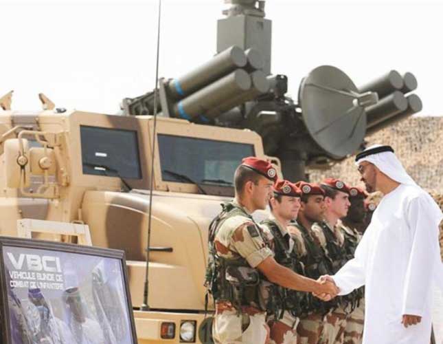 File Photo: His Highness Sheikh Mohammed bin Zayed Al Nahyan, Crown Prince of Abu Dhabi and Deputy Supreme Commander of the UAE Armed Forces, shakes hands with France’s armed forces.