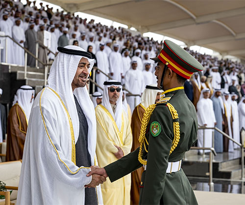 UAE President His Highness Sheikh Mohamed bin Zayed Al Nahyan attended Monday the graduation ceremony of the 50th batch of officer cadets and the first batch of university officer cadets at Zayed II Military College in Al Ain.